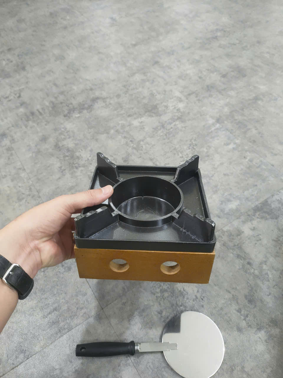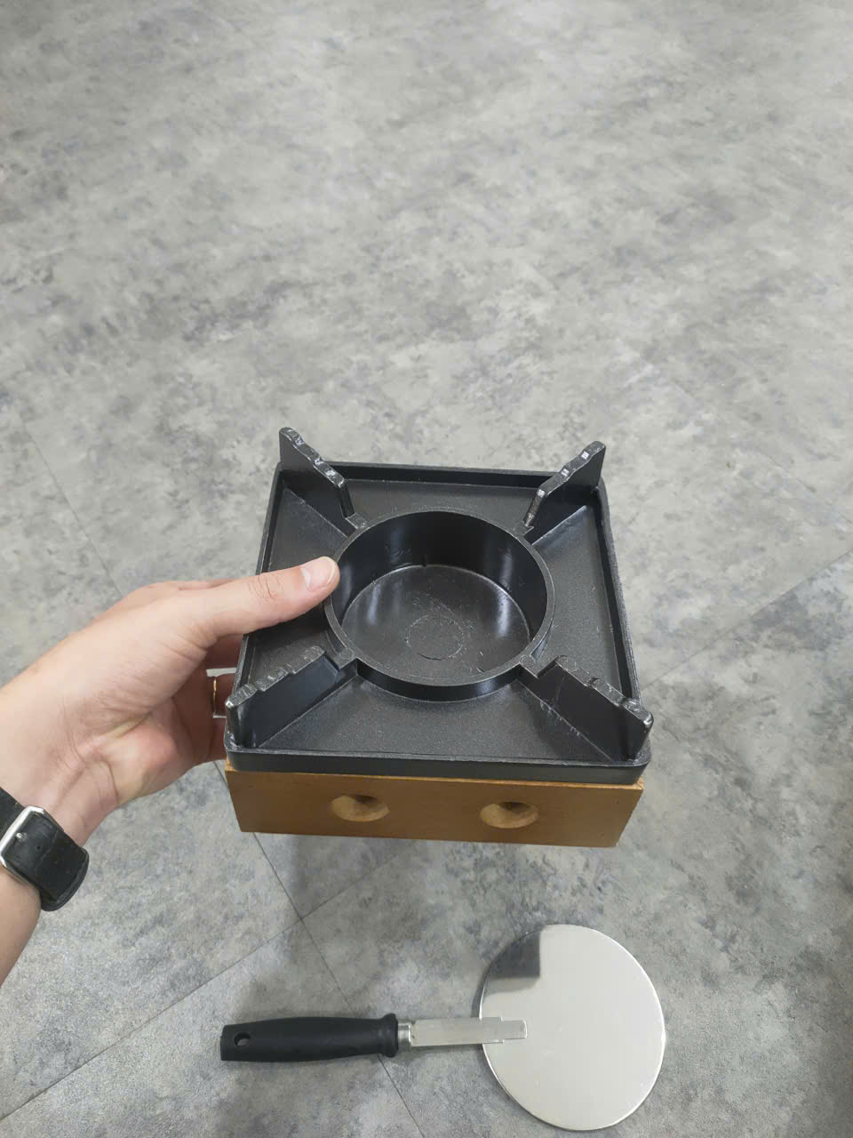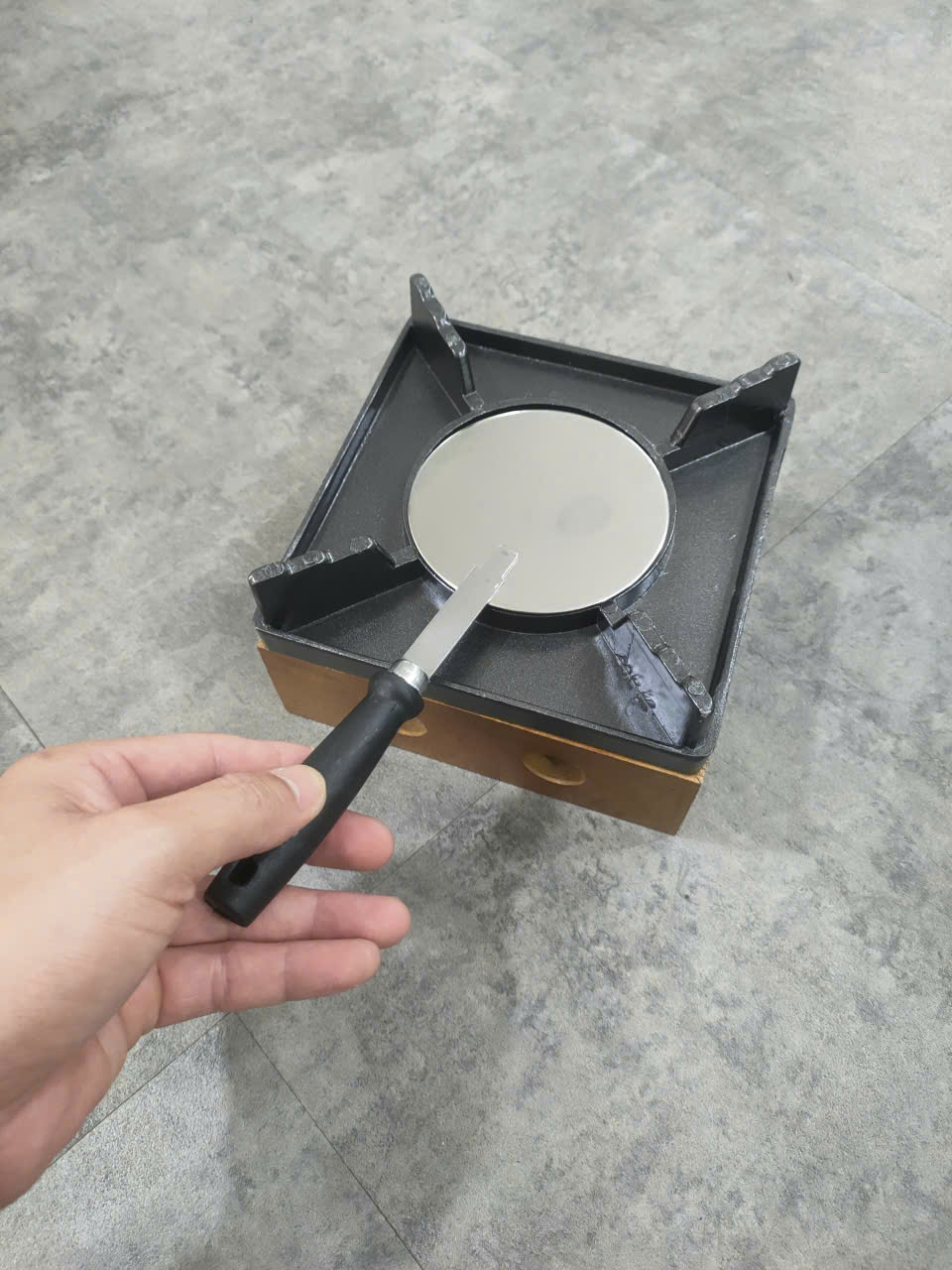 Bếp Cồn Gang Khung Gỗ Vuông 16 cm (L1)