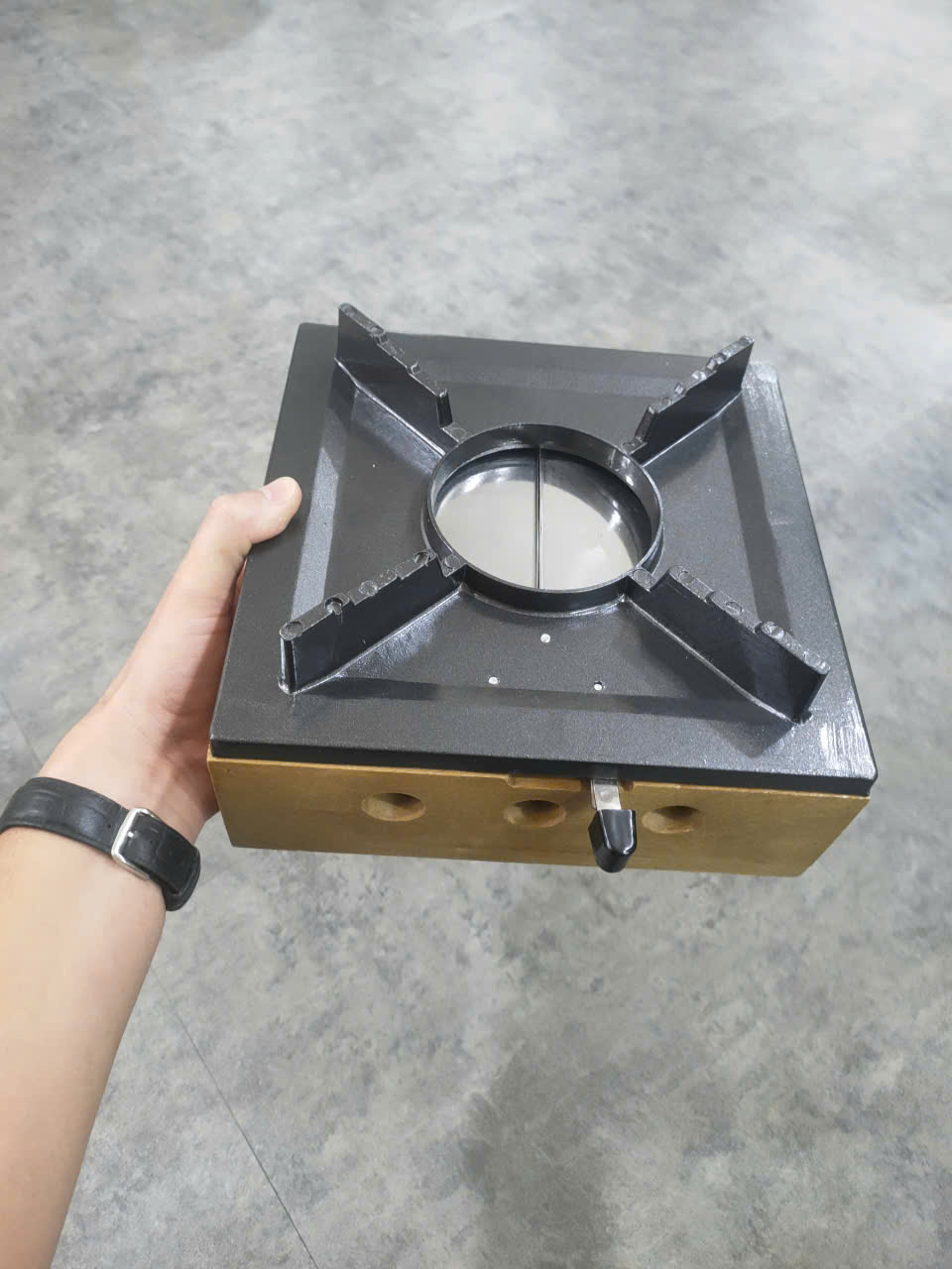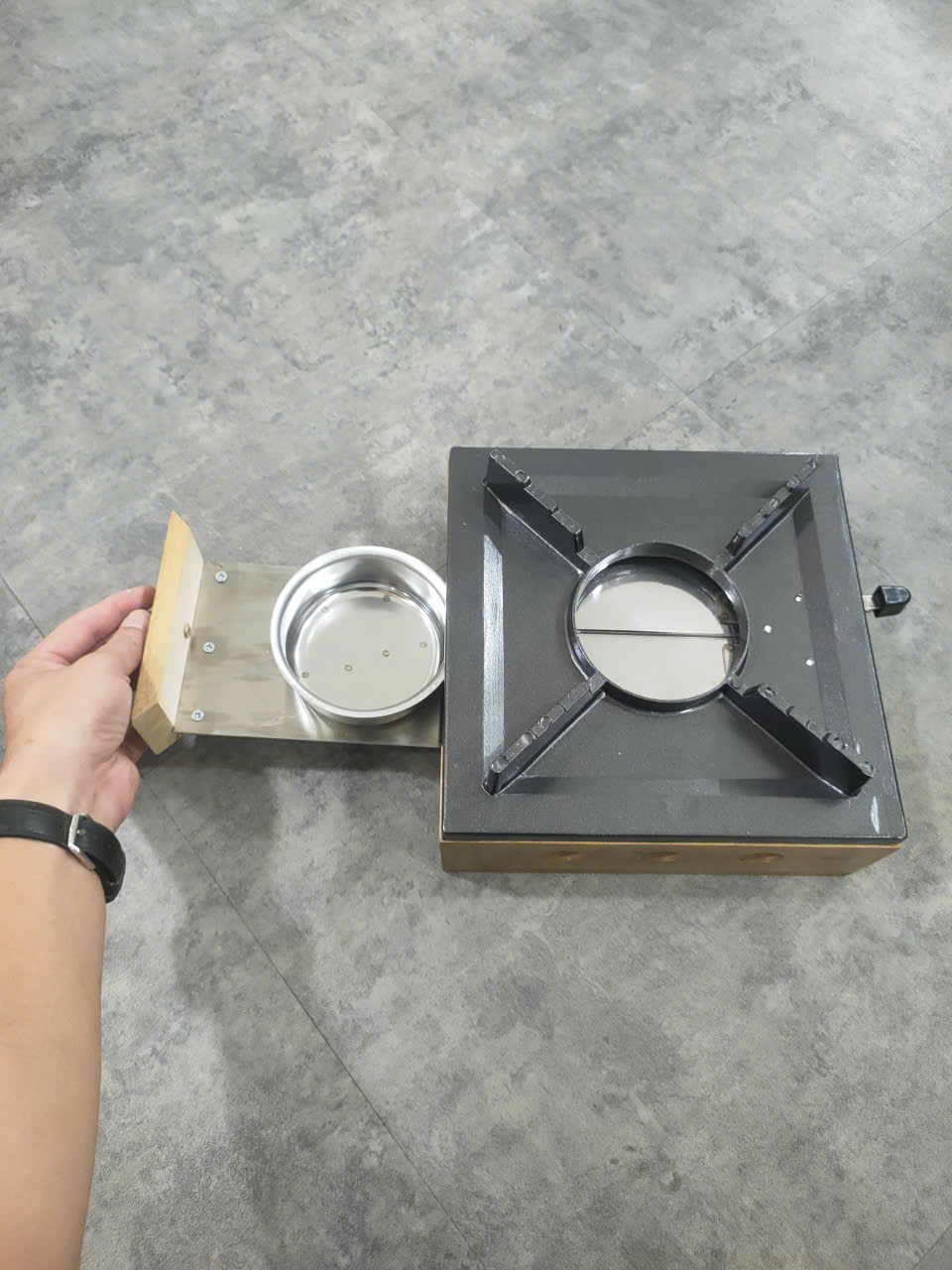 Bếp Cồn Gang Khung Gỗ Vuông 23 cm (L!)
